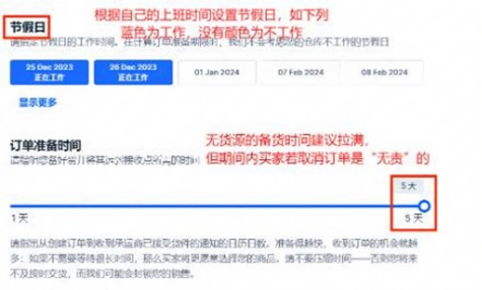 (2)备货时间,建议把备货时间拉满至5天,但是在备货时间内买家取消订单是无表的